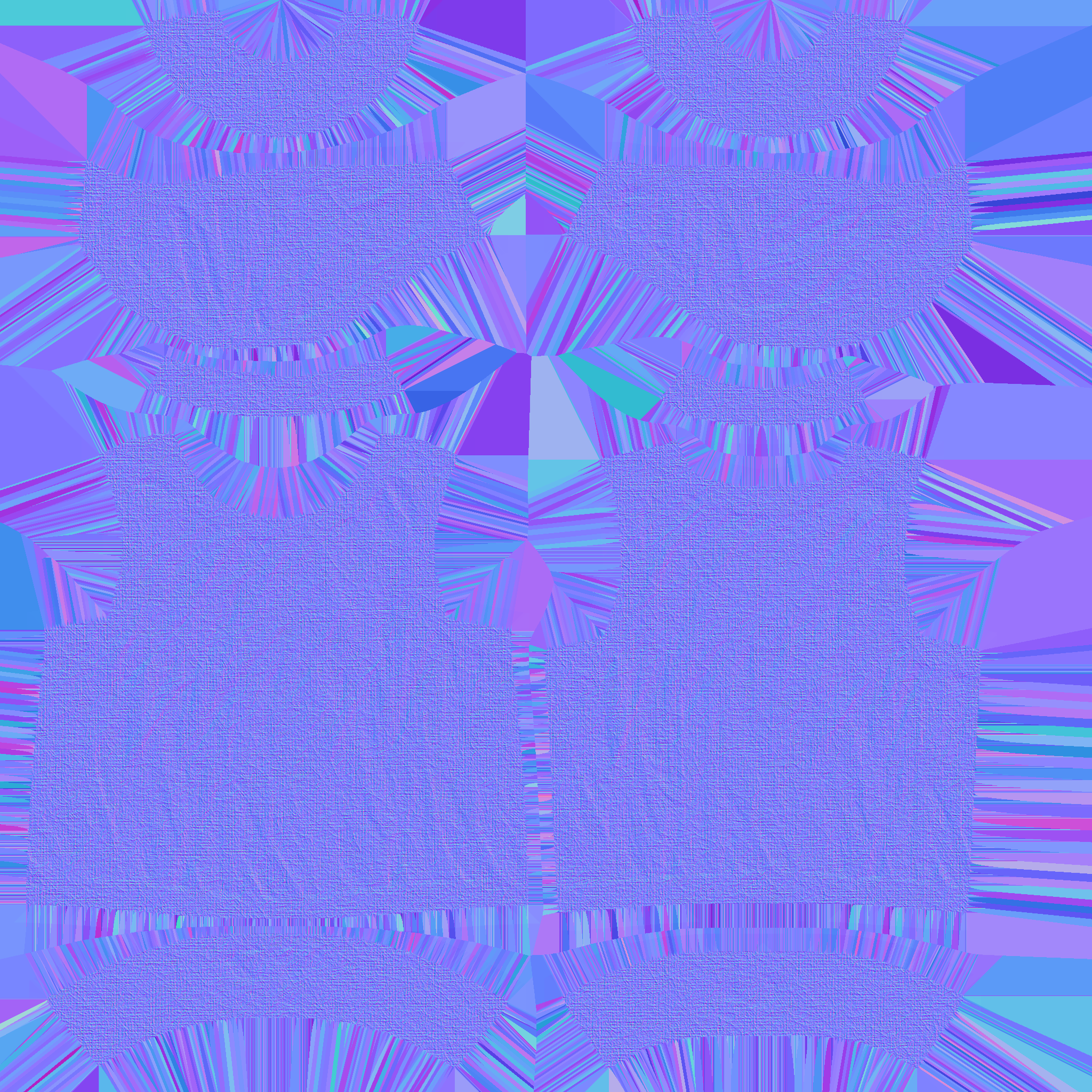 노멀 맵이 푸른 보라빛 컬러를 띄는 이유는 RGB 값이 (0.5, 0.5, 1)이거나 십육진수로 #8080FF면 벡터로 변환한 결과는 (0, 0, 1)이며, 이 벡터는 노멀 매핑에서 “위쪽” 에 해당되고 모델 표면에 변화가 없음을 나타내기 때문이다.
