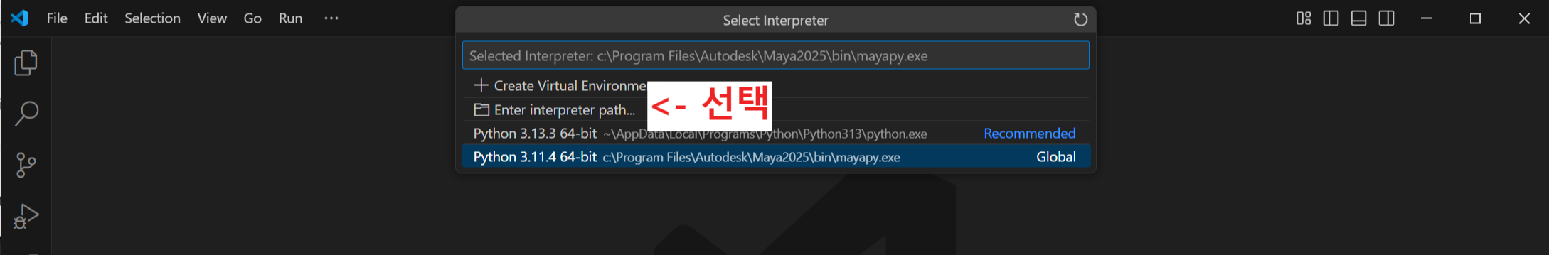 1. VSCode에 mayapy 익스텐션 설치