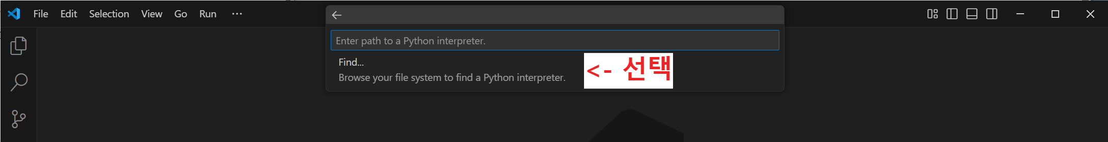 2. "Ctrl + Shift + P" 단축키를 누른 후 "Python: Select Interpreter"를 찾아서 선택
