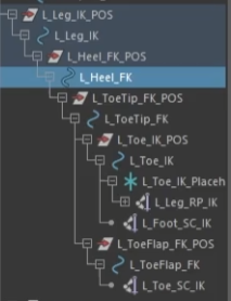 ├─ ToeTip_FK: 발 앞꿈치를 축으로 발을 움직이는 컨트롤러